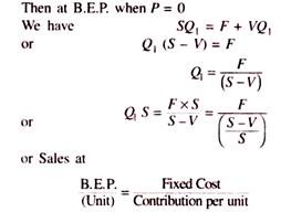 Thus from this figure, one can estimate the sales volume and profit at each price level. From the break-even chart Q = (Break-even point in units) = F + P / S-V