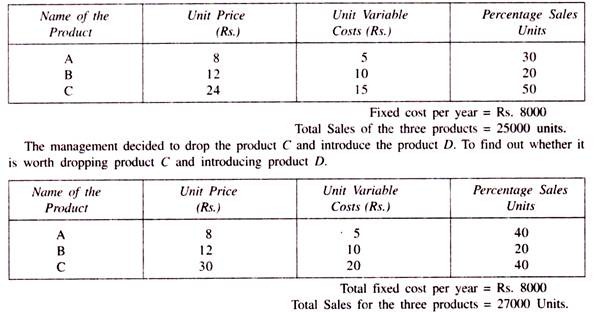 (2) If a product line is dropped from the production steam, what would be the consequent effects on revenues and costs? Break even analysis can be helpful in taking decisions in such situations.
