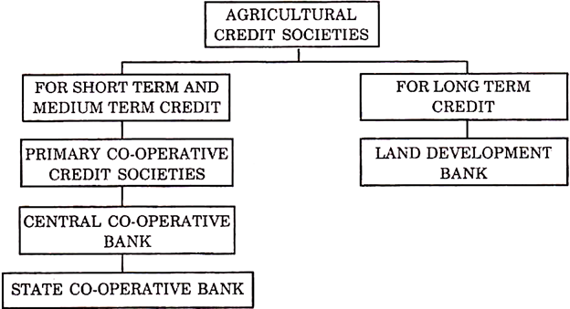 Primary Co-operative Credit Societies at village level, Central or District Co-operative Bank at the district level and state co-Operative Bank at the state level.