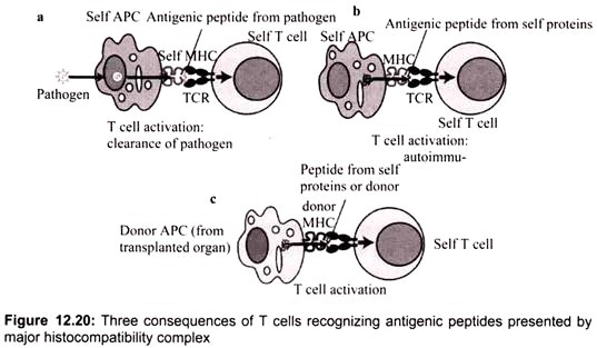 (c) In transplantation, T-cell activation in response to foreign (allogeneic) MHC molecules on the surface of donor antigen-presenting cells (APCs) induces destructive immune responses (Fig. 12.20).