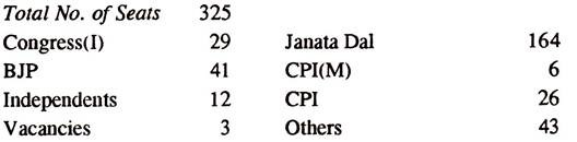 Elections for the State Assembly were held in February, 1990 and in a House of 319 B.J.P. captured 219 seats and formed the government. Congress (I) party could manage to get only 57 seats, Janata Dal 28, CPI 3, BSP 2 and independent 10.