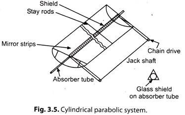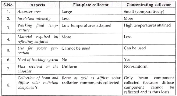 Concentrating collector is a device to collect solar energy with high intensity of solar radiation on the absorbing surface by the help of reflector or refractor. In these collectors, the area of collector is kept less than the aperture through which the radiation passes, to concentrate-the solar flux and has high concentration ratio.