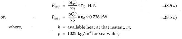 Given- H = 9 m; A = 0.45 x 106 m2; t = 3 hours; h = 8.5 m; η0 = 72%, p = 1025 kg/m3.