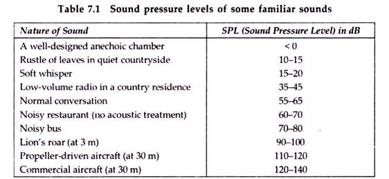 The subjective sensation of loudness of a sound varies more nearly in accordance with the sound pressure level. To get a feel for the sound pressure levels is dB, the rating of a few familiar sounds (Table 7.1)