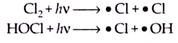 The relatively stable situation remains until after the onset of sunlight. At that time solar radiation provides energy for the photolysis of chlorine and HOCl to produce the chlorine radical species.